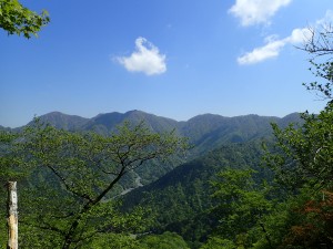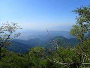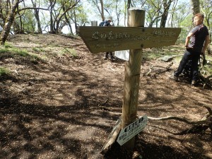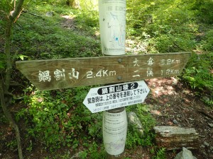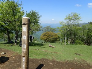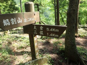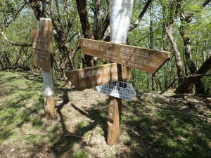 | 丹沢山から伸びる峰々 | 後沢乗越1.7kmとある(鍋割山頂上) | 鍋割山頂上(9:43) |