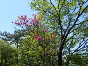 | ミツバツツジが見ごろ | 多くの登山者と離合する | 満開だ |