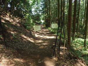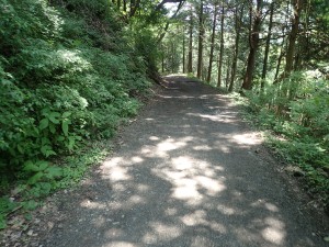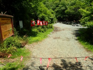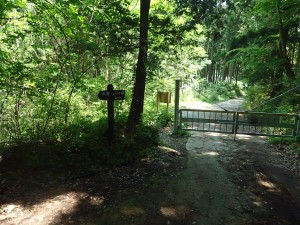| コンクリーの道から再び砂利道へ | ゲートから左へ | 再び登山道?ネットをくぐる(12:18) |