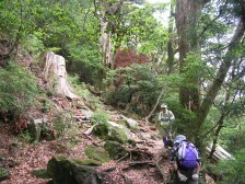| 大きな木の伐り株を見て降る | ここがあらゆるコースの合流点 | 石段を振り返る |