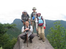 2007年6月3日 天気 曇りのち晴れ 昨日は万年山のミヤマキリシマを満喫し、今日は自然観察とボランティアの山の会の7月例会の下見に同行することになった。担当リーダはチューさんで参加者は代表のYさん(ひげのおじさん)、Fさん、山めぐりさん、Yさんと6人である。 今回は下見なのでまずはバスがはいるかどうかの確認をしながら登山口を模索した。一般的には黒木町からなので一旦、黒木町を見に行った。そして林道を走り、山茶花高原より一ノ宮岳への登山口を見つけ、登山開始となった。計画としては一ノ宮岳より多良岳、経ケ岳と縦走し、黒木町へ降るというコースだ。 <アクセス> 福岡からのアクセスとして 黒木町までは、長崎自動車道大村I.Cより国道444号線で黒木渓谷方面へ 山茶花高原は武雄北方I.Cより国道207号線を南に下る <コース詳細> 一ノ宮岳への登山口は林道右手を良く見ながら行くと小さな標識があります。長崎県の境界(杭)に沿って歩き、一ノ宮と書かれた鳥居に出ます。さらに登山道を進みますがその先の黒木岳は山腹を巻いて進むことになります。黒木岳と多良岳の鞍部に出ると案内板があります。案内板には多良岳の山腹を行く道が記されています。私たちはここより右に進み前岳(982.7m)を目指します。案内板より右に行くと道は左に回りこみ前岳へと急登となります。かなり厳しい上りです。ピークに達すると視界が開け、雲仙岳の山々が海を挟んで見えてきます。この眺めだけでもここに来た甲斐があります。岩尾根が続き、所々ヤセ尾根で危険な場所もありますが、巨岩群が面白い形をしていて驚くばかりです。人口的に造られたのではないかと創造できる不思議な岩もありました。 |