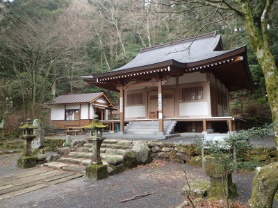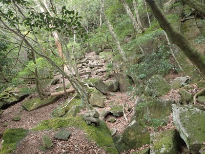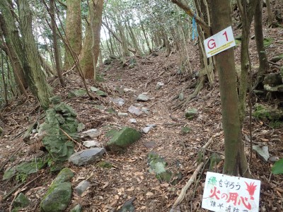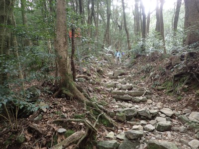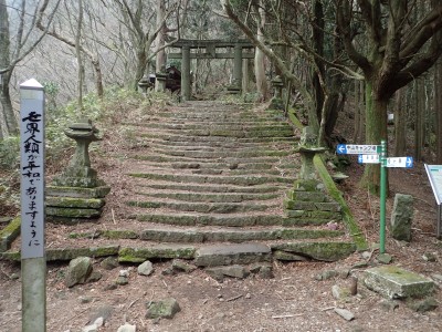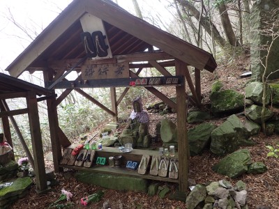 | 分岐点に戻り石段を進む(11:35) | 役行者様 | 歴史を感じる石段だ |