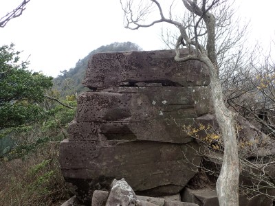| 面白い岩だ | 巨石 | 周りはマンサクの木が多い |