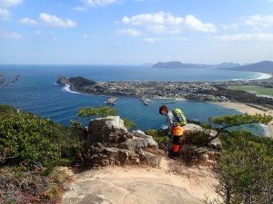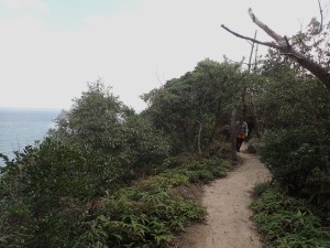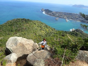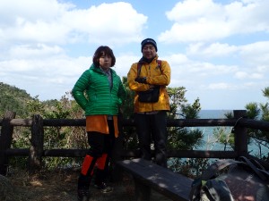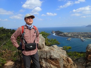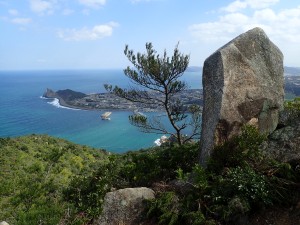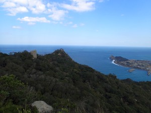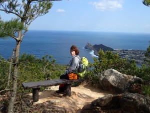 | 登山口(10:19) | 展望所で | 亀の形をした芥屋大門 |