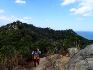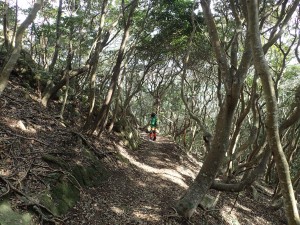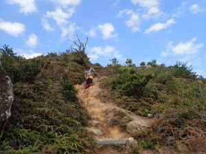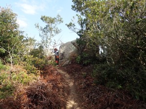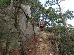 | 巨石群のピークを振り返る | 岩壁の横を通過する | この尾根歩きは、なかなかのもの |