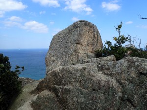 | 福の浦越へ | 絶景ポイント | 今にも落ちそうな巨石 |