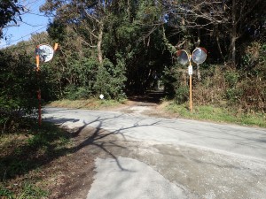 | 樹林帯に入る | 登山口が見えた(11:36) | 車道を歩く |