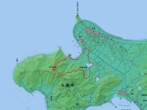 | 駐車場〜浜側の登山口〜山頂〜車道〜駐車場 | ||