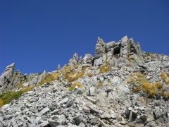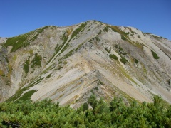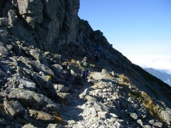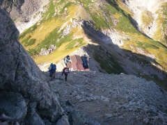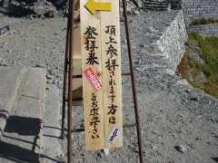| 落石に注意です | 斜めに登りつめると別山北峰 | こんなところに・・・・ |