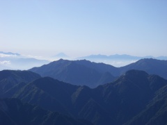 | 神主さんと記念に | 富士山が遠くに見える | 縦走路へと進む |