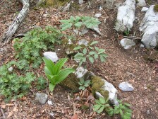 | 石灰岩が現れる | ヒトリシズカの群生 | 可愛い花である |