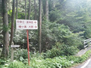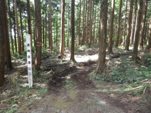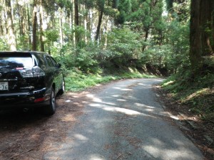 | 渡神岳登山口とある | 駐車スペースはあまりない | 植林帯の登山口 |