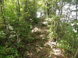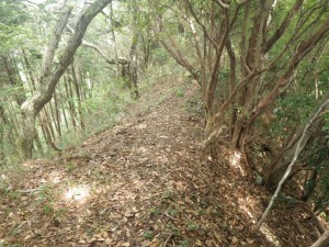 | 前ページから 酒呑童子山とハナグロ山に登って時間と体力に余裕があるので予定通り渡神岳へと足を伸ばした。渡神岳の登山口は一般的には椿ケ鼻ハイランドパーク側からであるが、そうなるとかなり遠回りで移動時間がかかり過ぎて少々時間が足りない。そこであまり情報がないが、石建峠からのルートを行ってみることにした。鯛生金山から442号線に出るとすぐに左折し、またすぐに地方道9号線を行く。途中立派な道路に右カーブするところがあるが間違えないように直進する。石建峠には渡神岳登山口のりっぱな標識がある。道路の脇に車を停めさせてもらって12時ちょうど出発だ。植林帯からすぐに自然林の尾根道になる。ブナの木が目に入る。道は急斜面になり岩も目に着く。祠が光の中に見えてきたら山頂だ。山頂は南と東が開けている。時計を見ると12時半だ。ここで昼食をすることにした。それにしても他の登山者は一人もいない。一人寂しく昼食を摂ったら往路を降る。登山口に戻ったのは13時20分だった。ここから林道を日田市街方面へ抜け、国道に出て小石原を経由し、帰宅した。 <コースタイム> @酒呑童子山〜ハナグロ山 カシノキヅル越登山口-(14分)-小鈴山頂上-(13分)-小鈴越-(24分)-酒呑童子山頂上-(分)-上-(15分)-小鈴越-(13分)-小鈴山頂上-(10分)-カシノキヅル登山口-(3分)-ハナグロ山登山口-(40分)-ハナグロ山頂上-(35分)-カシニキヅル登山口 ※休憩時間は含まず。全行程で3時間かかりました。 A渡神岳 石建峠登山口-(30分)-渡神岳頂上-(30分)-石建峠登山口 ※休憩時間含まず。全行程で約1時間半かかりました。 |