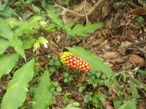 | 境界杭がある | 足元は笹が多い | マムシグサ |