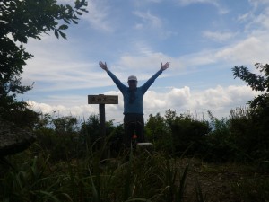 | 最近このポーズを覚えた? | 北側は展望なし | 涌蓋山が見える |
