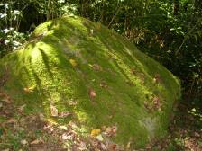 | 池を左手にして林道を歩く | 右手に杖、砥上道の標識 | ひづめ石(馬のひづめの跡?) |
