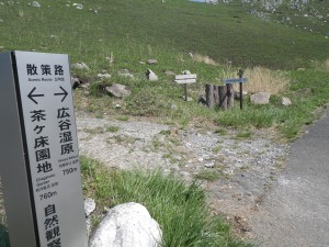| 茶ケ床園地まで散策路 | ここは右に | 作業道に出る |