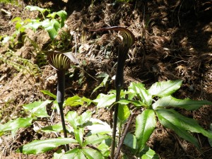 | 急斜面を下る | ムラサキケマン(紫華鬘) | 夫婦マムシグサか? |