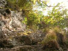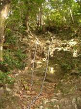 | 男道の鎖場 | お地蔵さんの出迎え | 4合目のベンチと地蔵 |