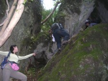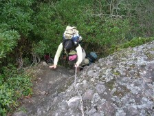 | 鎖場を行く家内 | 針の耳 | 足の位置を確認しながら下る |