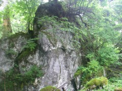 | ここから山頂への道もある | 洞窟がある | 岩壁の脇をくだる |