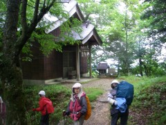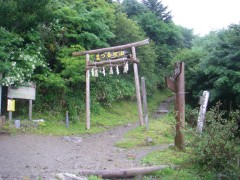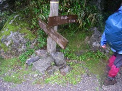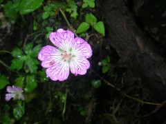| 階段状の登山道をひたすら上ると鳥居がある | フウロの花は濡れていた方がきれいだ | 剣山本宮宝蔵石神社 |