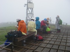 | 右手の小屋が山頂ヒュッテ | 山頂までは木道 | 三角点 |