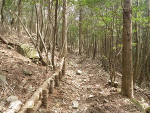 | 右は植林帯、左は自然林 | 落ち葉が積もって歩きやすい | ここは右 |