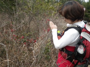 | サルトリイバラを見ている | 落葉樹のきれいな場所 | 木が無くなって来た |