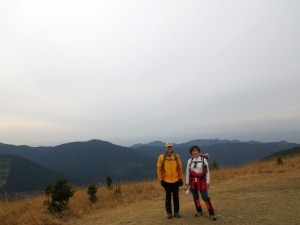 | 前ページ(洲藻白岳へ) ガイドブックにもあるが有明山は「対馬の嶺」と呼ばれ、万葉集でも詠まれたという名山ということだ。おそらく今朝飛行機の窓から対馬を見下ろしたときに一番に目にはいった山だったのではないかと思う。 ガイドブック(新分県登山ガイド「山と渓谷社」)では、厳原港から清水山を経て有明山山頂へと行くルートが記載されているが、それだと時間的に無理があるため、先輩方のホームページ等を参考に上見坂からのルートを歩くことにした。 洲藻白岳登山口から約50分かけてチェーンが掛けられた登山口に着く。ここからの道は稜線沿いに延びているためアップダウンは緩やかで歩きやすいが、アンテナや施設のための道のようなので趣には正直欠ける。 落ち葉が積もった広い道までくるとようやく登山道らしくなり、快適な歩きを楽しむ。 有明山1.5kmの道標がある場所は他にも立て札などがあって登山口らしき雰囲気で道は本格的な登山道となり勾配もきつくなる。 潅木帯に出るともう頂上が近いと感じる。今朝は青空だったのに雲が広がり、雨でも降りそうだ。振り返ると先ほど歩いた洲藻白岳が見える。 山頂は広い草原でもちろん眺めも素晴らしい。どんよりとした空なので少々残念ではあるが・・・ 。山頂標識で3人の男性登山者が写真をしきりに撮っている。会話を聞く限り韓国の人である。 その三人も厳原へと下山して行くと他に登山者はなく、この草原の頂上は私たちだけとなり、二人ではあまりにも広すぎるが、なんだかそれが満足感となるのが不思議だ。しばらく眺めを楽しんで下山は往路を戻る。 計画よりも早いペースで行程を消化し、もう一座と言いたいが、かなり疲れたので今夜宿泊予定のホテル付近で明日の昼食とお土産を買うことにして厳原の街に入る。おどろいたことに大きなショッピングモールがある。スーパはお馴染みのレッドキャベツ、そしてうどん屋さんやパン屋さんなどあるが、やはり韓国の人で賑わっている。 ホテルにチェックインする頃は既に17時を過ぎていてホテルでは夕食がないので近くの小料理屋さん(汐路)でおいしい料理とお酒をいただく、登山後のお酒はやっぱりうまい。 今日も自然に山に地元の人に感謝!! 明日は、竜良山と御岳を歩く。 <コースタイム> チェーンゲート-(50分)-登山口-(30分)-山頂-(20分)-登山口-(40分)-チェーンゲート ※休憩含まず。全行程で約2時間50分でした。 翌日の竜良山へ |