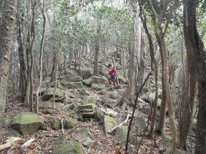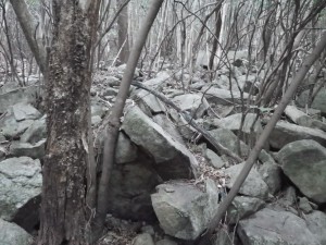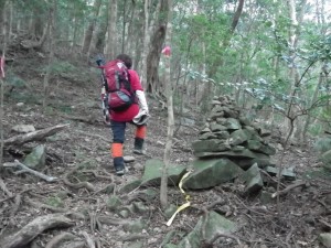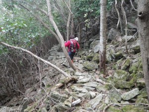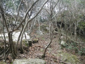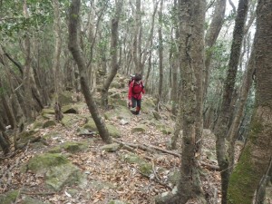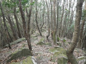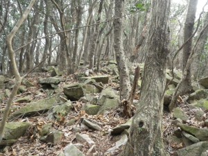 | 石だらけ | 山腹を歩く | 鞍部・・・ここで尾根に取り付く(8:50) |
