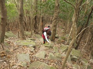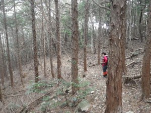 | 転ばないように慎重に | 石だらけの場所は速やかに横断 | 植林帯をのんびりと歩く |