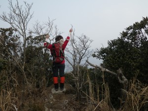 | 山頂手前は展望が良い | 山頂にて(9:20) | バンザーイ! |
