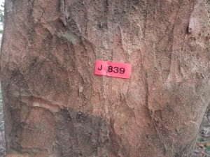 | 人の足のような奇木 | 何かあった? | 番号札が貼ってある |