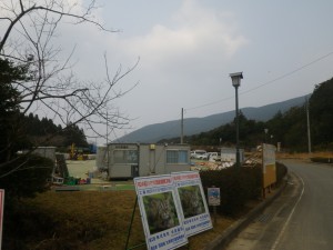| 予定していた駐車場は工事中 | 狭い道を車で入り込む | 登山口前に2台程度の駐車スペース(7:50) |