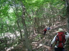 | 谷間を歩く | 支尾根に取り付き急登する | もうすぐ稜線 |
