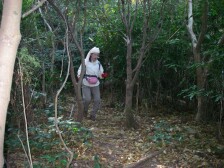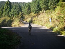前ページからの続き 女岳から浮岳への縦走路は、荒谷峠を越えるのですが、舗装された林道が現れ、少しこの林道を歩くことになります。林道の北側に浮岳の標識がありますのでそのとおり左折します。しばらく歩くと右手に小さな標識で「浮岳(地形図表示の従走路)」とあります。私たちは、そのまま舗装された林道を進みます。途中、道は分かれますがちゃんと標識があるので迷うことはないでしょう。峠から約30分ほどで左手に広場があります。駐車スペースのようです。すぐに道は左カーブするのですが、そこに登山口標識があります。ここより登山道となります。10分程度歩くと従走路(登山道)との合流点です。帰路はこちらを歩くことにしました。ここから急登となります。5分ほどで白龍稲荷分岐となり稲荷の方へ進みます。 お稲荷様に立ち寄ってさらに登るとお稲荷様のお社の上部の岩に立つことができます。ここからの展望は玄界灘が見渡せます。さらに急登を10分程度喘ぐと上宮がある山頂です。浮岳山頂は北側の展望がありますが、木々で開けてはいません。今回はここで昼食としました。登山者は少なく、後から2人来られただけです。帰路はお稲荷様経由と違うコースで下ります。(すぐに合流)さらに荒谷峠まで従走路を下ります。舗装道と違ってアップダウンがあるので逆周りが良かったかもしれません。山頂から約40分で荒谷峠に着きます。荒谷峠から再び女岳を登り、往路を戻ります。車に戻ったのは既にPM3時を過ぎていました。そして車で白木峠まで移動し、十坊山に登ります。(次ページ) <参考コースタイム> 女岳北登山口−(15分)−林道−(20分)−荒川峠合流点−(15分−女岳−(20分)−荒谷峠−林道経由−(25分)−登山口−(20分)−白龍稲荷−(10分)−浮岳−従走路経由−(40分)−荒谷峠−(30分)−女岳−(15分)−林道−(10分)−女岳北登山口 ※休憩時間は含まれていません。往復で約4時間のコースです。 |