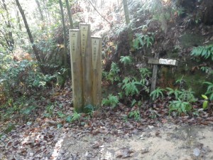 | 二兒神社への分岐点 | 新田氏の表中碑 | 御所ケ岳への道標はない |