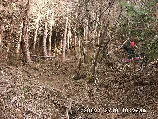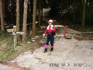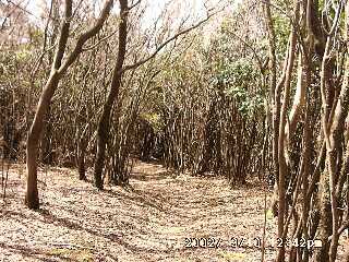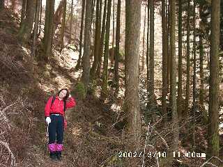 | 雑木林の荒れた道を行く | 植林帯を行く | 山頂でいつものポーズ |