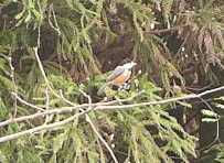 この付近に駐車しますが、左折したところに数台駐車できるスペースがあり、右手(山手)に登山口があります。(写真左) 沢を横切り荒れた山道を30分程度歩くと林道に出、右に3m程行きさらに登ります。15分程度行くと視界が広がり一旦小さな尾根になります。 さらに15分程度進むと水場があり沢を右手にして大きな岩を見て20分程度でもっと大きな岩の下に馬見神社上宮が見えてきます。この大きな岩が「御神所岩」で今回の見所です。 「御神所岩」からさらに丸木段を登り支尾根を過ぎ綾線を行くと九州自然歩道と合流します。「御神所岩」から約15分で馬見山山頂に到着です。見晴らしはあまり良くないのですが、尾根を少し行くと南側の展望が楽しめます。帰路は来た道を戻り、九州自然歩道(尾根)を屏山方向に向かい宇土浦越から下ります。宇土浦越から約40分で林道に出、すぐに舗装した道路に出て駐車したところまで10分ほど到着です。 <コースタイム> 宮小路三叉路の登山口−(30分)−林道−(20分)−水場−(30分)−御神所岩−(15分)−山頂-(40分)−宇土浦越−(40分)−林道−(5分)−車道−(10分)−宮小路三叉路 この付近は登山だけでなく、たくさんの果樹園があり、観光化されていますのでりんご狩やなし狩が楽しめます。また馬見神社にも立ち寄ってみてはと思います。 (本日のお弁当) コンビにで買ったおにぎり、ネギのカップみそ汁、さんまの蒲焼(缶詰) (本日出会った動物) 背中がブルーで腹が黄色、カワセミのようで でも写真をみる限り違う何だろ?(写真下) |