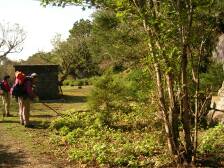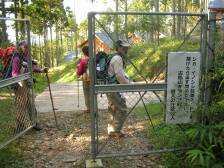 | 川原を下り杉林を行く | シカ等の進入を防ぐ柵 | 遊人の杜キャンプ場 |