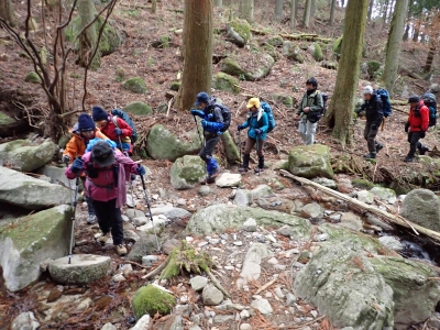 | 今回は9名の参加者 | 何度か渡渉する | あれ、降ってる? | |