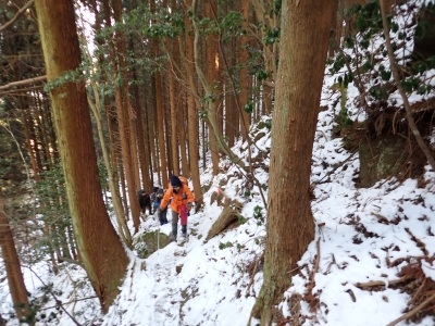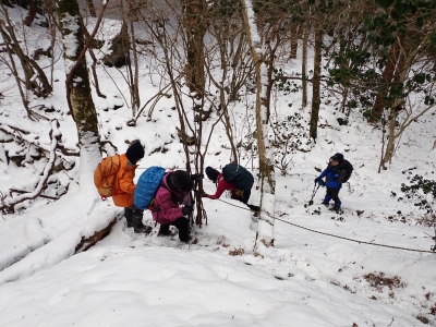 | 急斜面をゆっくりと進む | 雪が少し深くなってきた | 結構きつい登り | |