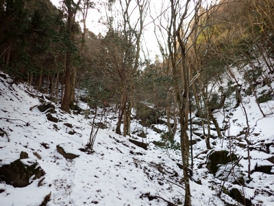 | 林道終点から左に登山道(10:03) | 急だ | 谷を詰める | |