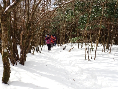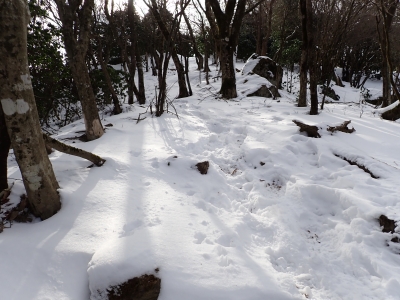 | 古処山方面へ | 雪がフカフカで気持ちよい | 再び展望所へ戻りここから下山開始(12:47) | |