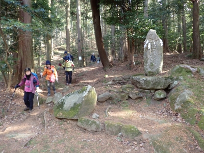 | 駐車場からすぐに登山口 | 遙拝所登山口(8:53) | 石がゴロゴロとある | |