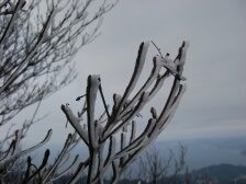 | 登山者へ注意の看板 | 霧氷が見れた | 新芽と霧氷 |