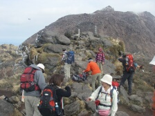 | 自衛隊のヘリか? | 山頂の様子(平成新山をバックに) | 普賢岳山頂にて(MORIさん撮影) |