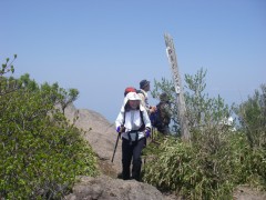 | 国見分かれ辺りから見た普賢岳山頂 | 鎖場を楽しむメンバー | 国見岳山頂 |