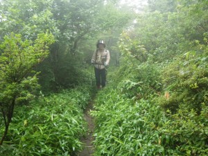 | 丸いのは蚊取です | 奇岩をバックに | 霧氷沢分かれへと進む |